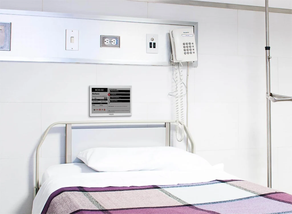 Electronic labels are a great step forward as they enhance operation efficiency with less workforce and cost. Digital signage in hospitals is not only pleasing to the eye but hygienic and easy to clean. Also, they alleviate the heavy workload of nursing staff. Bed allocation, update of room occupancy, and relevant data for healthcare specialists, patients, and visitors can be provided with electronic labels, hence spending less cost and allowing staff to have time for other tasks.